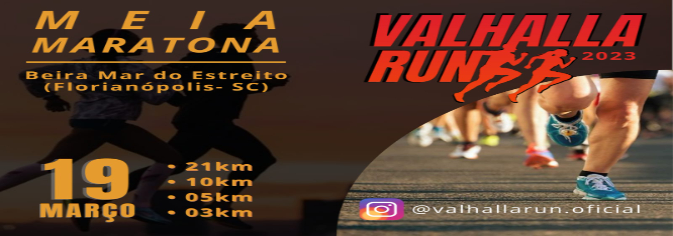 Valhalla Run 3/19/2023 Florianópolis, SC MODALITIES AND CURRENT VALUES Meia Maratona Valhalla Run R$ 135.00 + Taxa de Serviço (Quando houver) INFORMATION CAMISETA SACOCHILACHIP GARRAFA NUMERO DE PEITO COUNTDOWN REMAIN: Contact CONTACT US